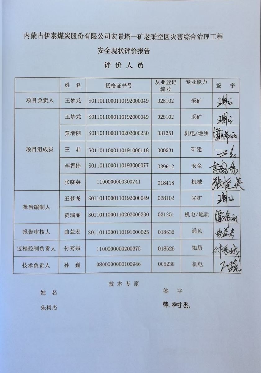 安全現(xiàn)狀評(píng)價(jià)對(duì)象:內(nèi)蒙古伊泰煤炭股份有限公司宏景塔一礦老采空區(qū)災(zāi)害綜合治理工程